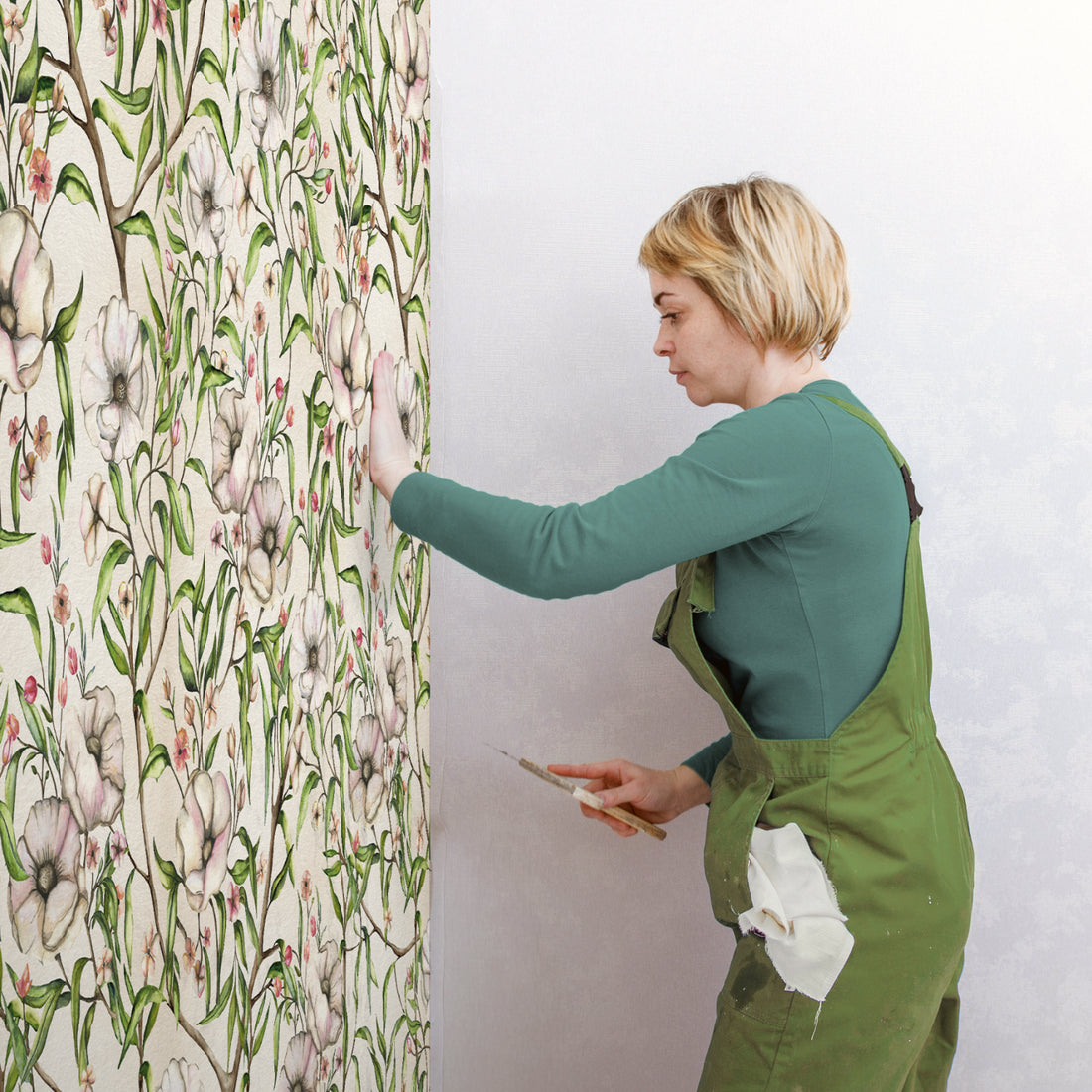 Each pattern begins by hand in our studio, drawn, painted, or woven, then printed in Sweden at Borås Tapetfabrik using a blend of traditional and modern sustainable techniques. It’s art-forward, beautifully made wallpaper that installs with ease, so refreshing your space feels intuitive, inspiring, and genuinely fun.