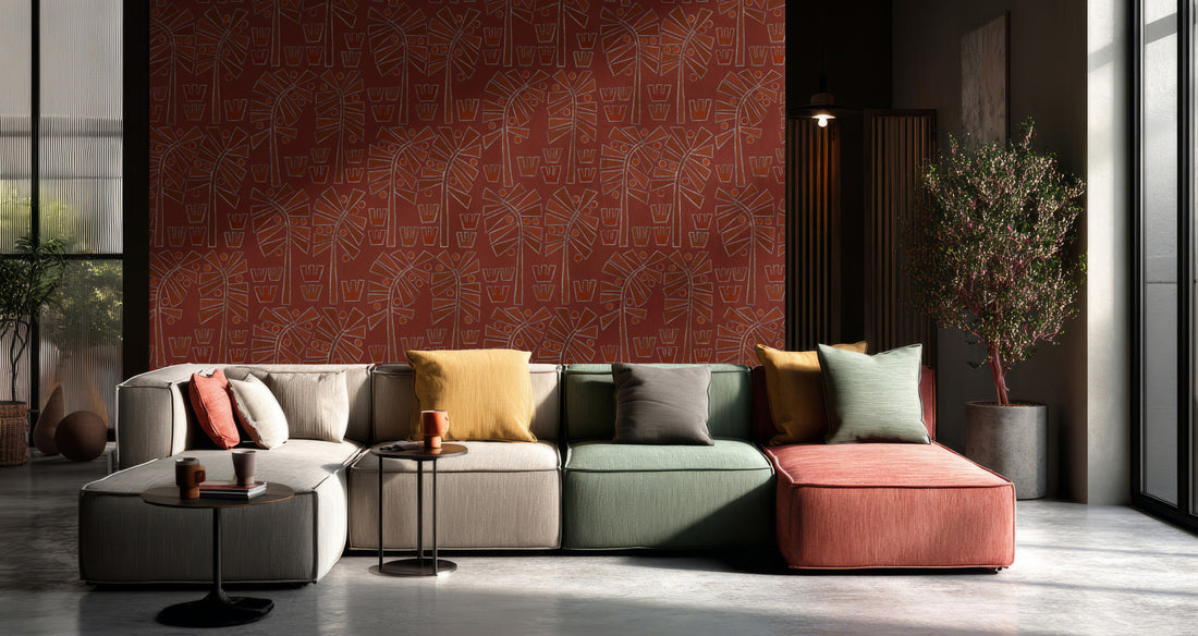 Explore our collaboration with Portland artist Ilse Coffman, whose layered designs draw on printmaking and ancient mark-making to bring warmth and rhythm to the wall.