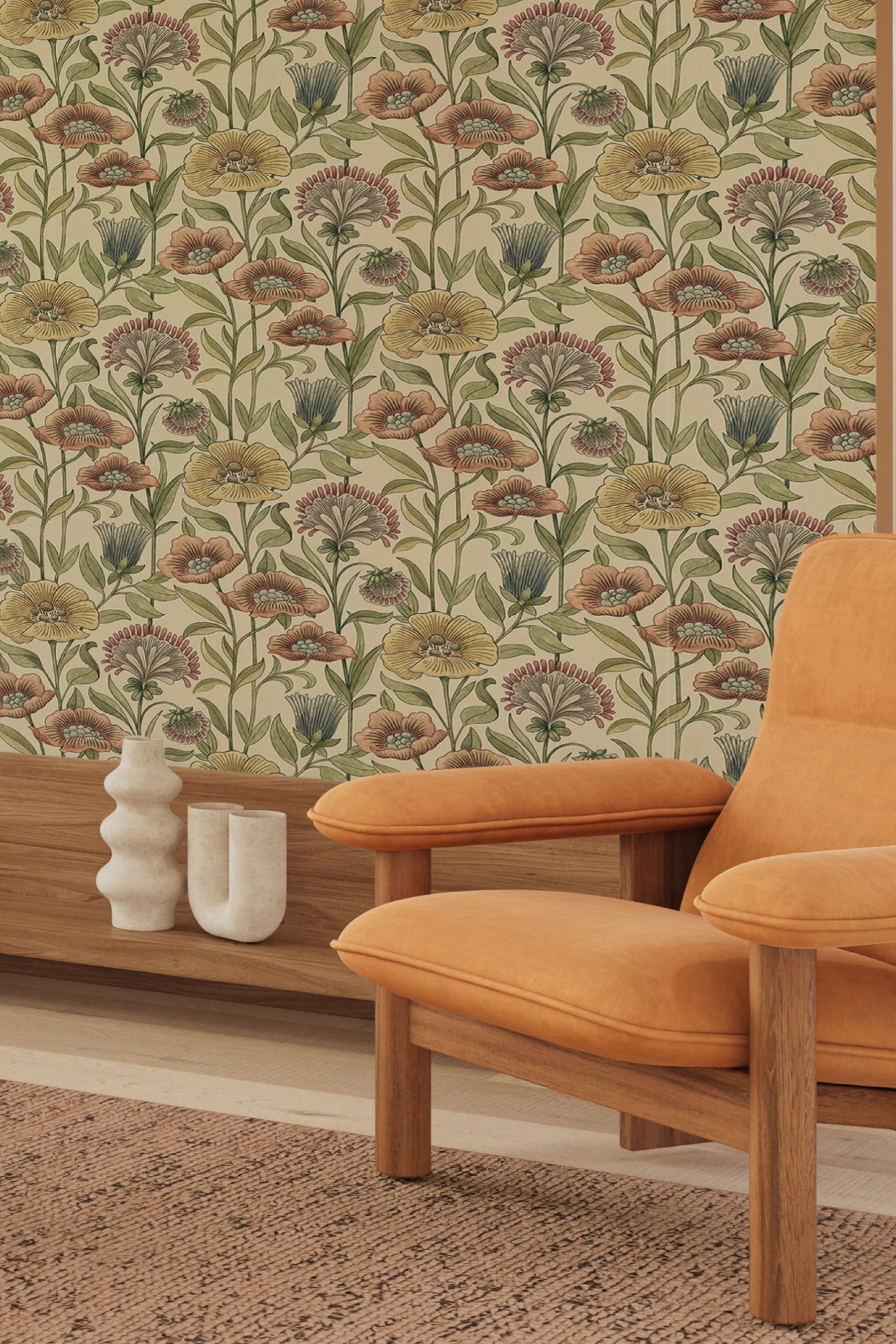 Cosmos captures the graceful movement of watercolor florals. Inspired by the distinctive shape of the cosmo flower and the charm of folkloric motifs, this classic design brings poetry to any space.