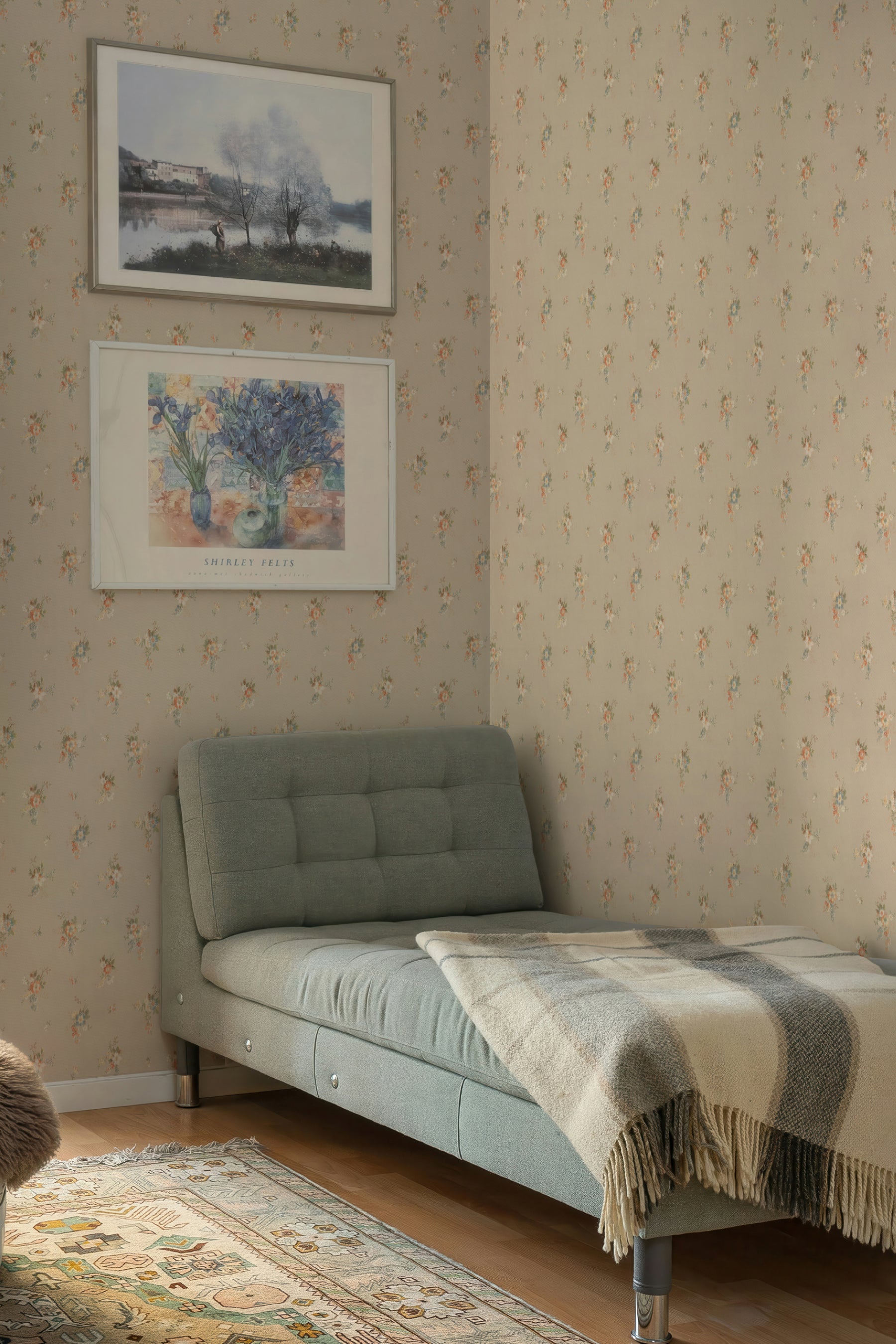 Hedgerow is inspired by a 1920s hand-block printed floral in a soft moiré-style background treatment. Soft florals drift across the surface without density. The restrained palette and softened detail give the design a calming, lived-in charm, perfect for bedrooms, nurseries, and cozy spaces that call for warmth.