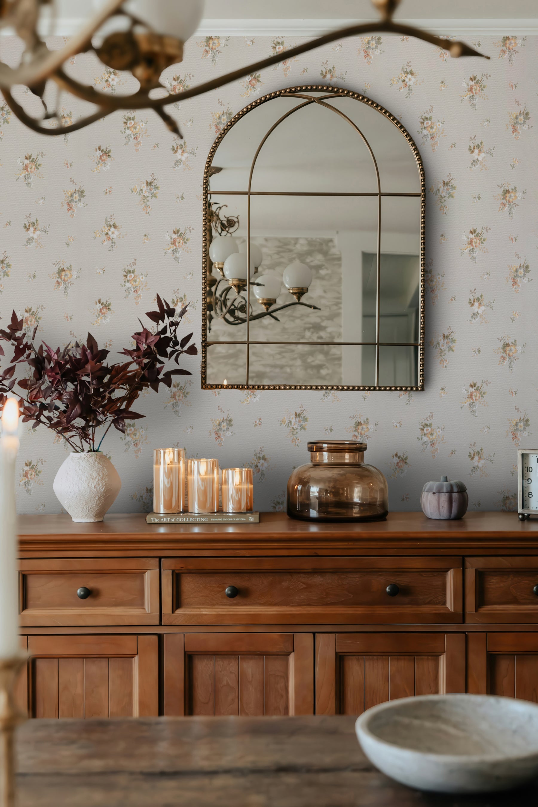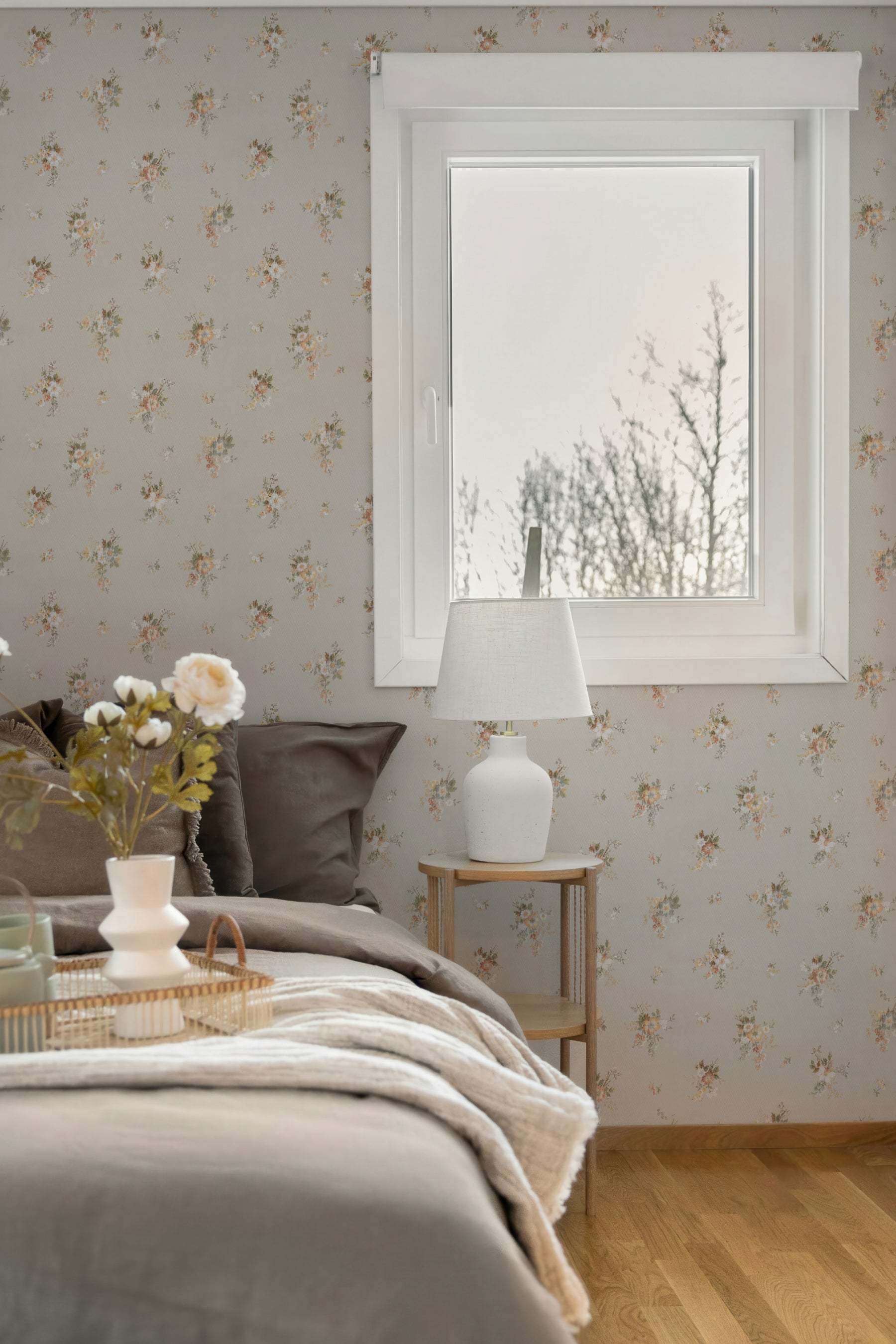 Hedgerow is inspired by a 1920s hand-block printed floral in a soft moiré-style background treatment. Soft florals drift across the surface without density. The restrained palette and softened detail give the design a calming, lived-in charm, perfect for bedrooms, nurseries, and cozy spaces that call for warmth.