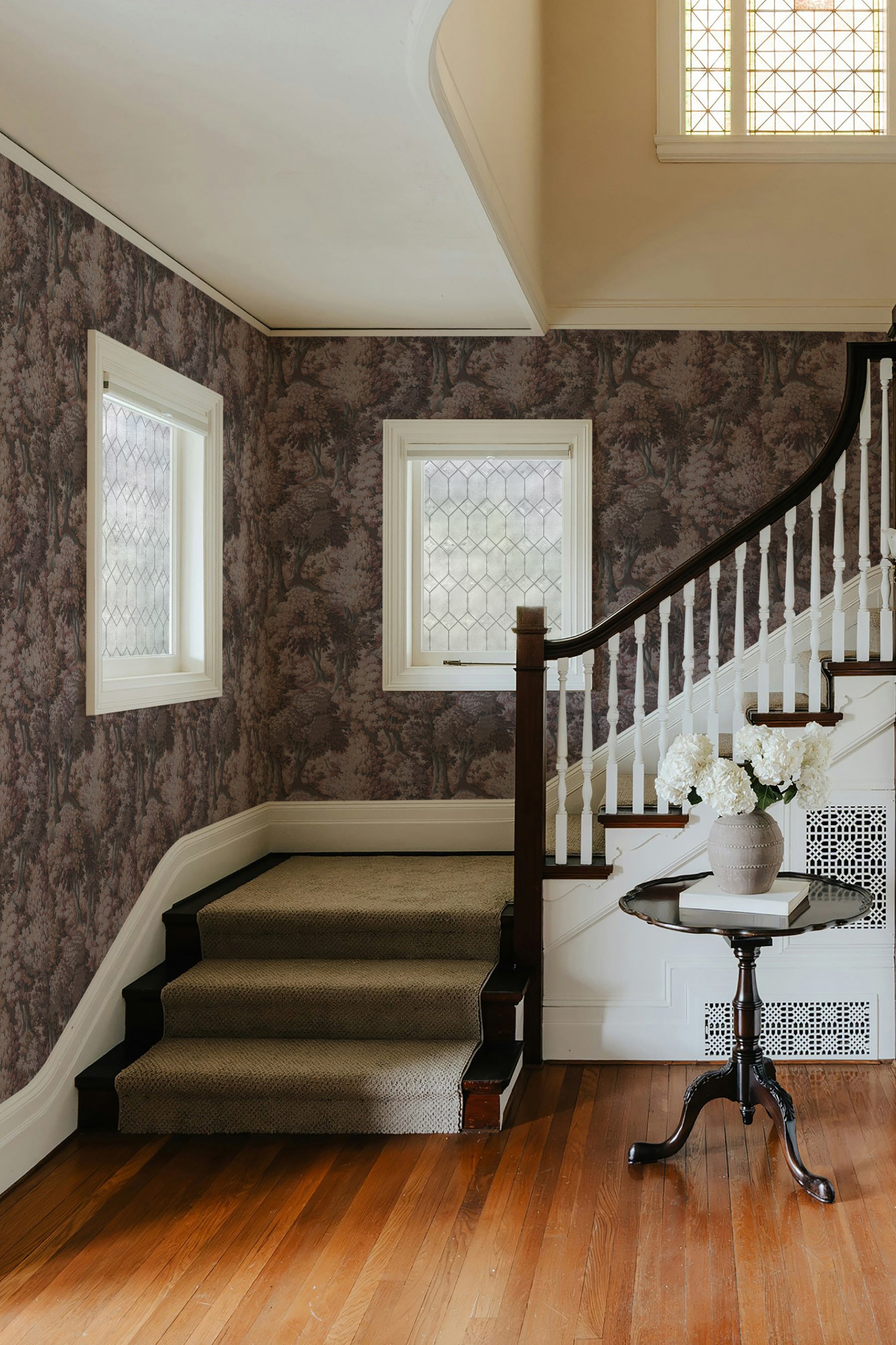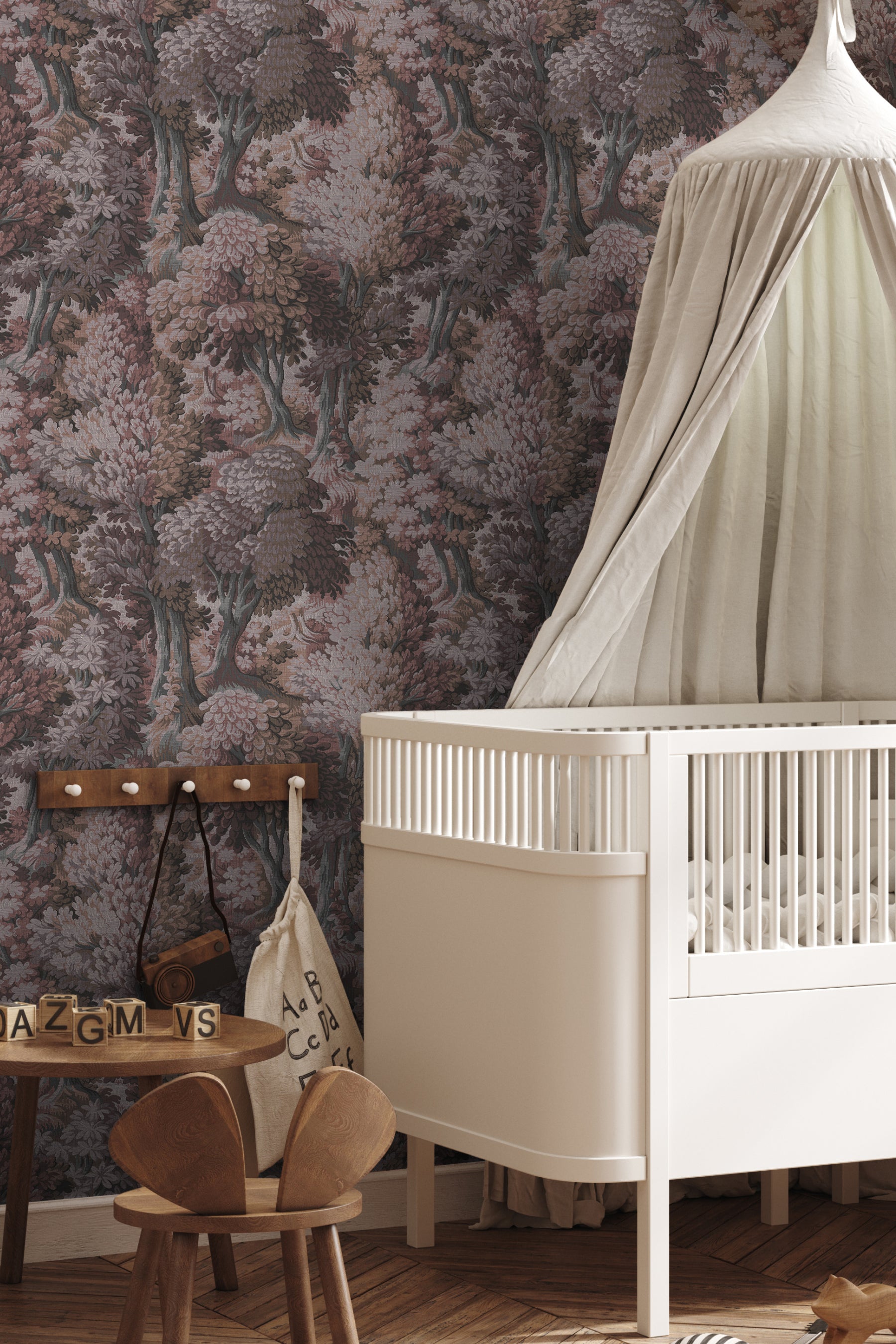 Orléans Forest is drawn from an antique French tapestry, reimagined as a wall covering that feels regal and restorative. The design carries the visual depth of hand-woven textiles, layered botanicals, softened edges, and a richness that reads as timeless. Though rooted in historic craftsmanship, Orléans settles easily into contemporary homes, offering texture, pattern, and grounded calm.
