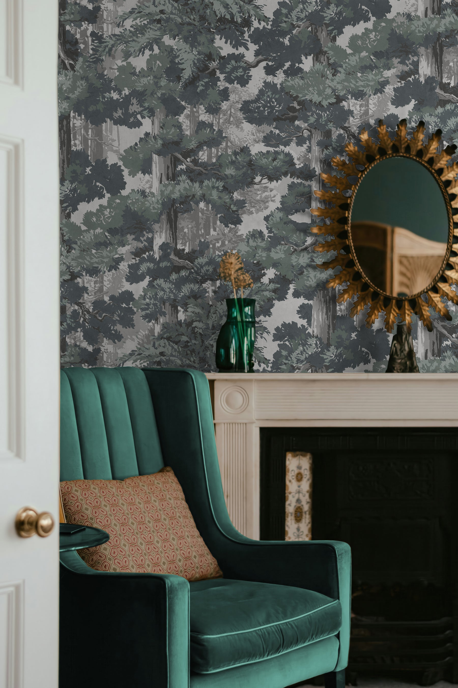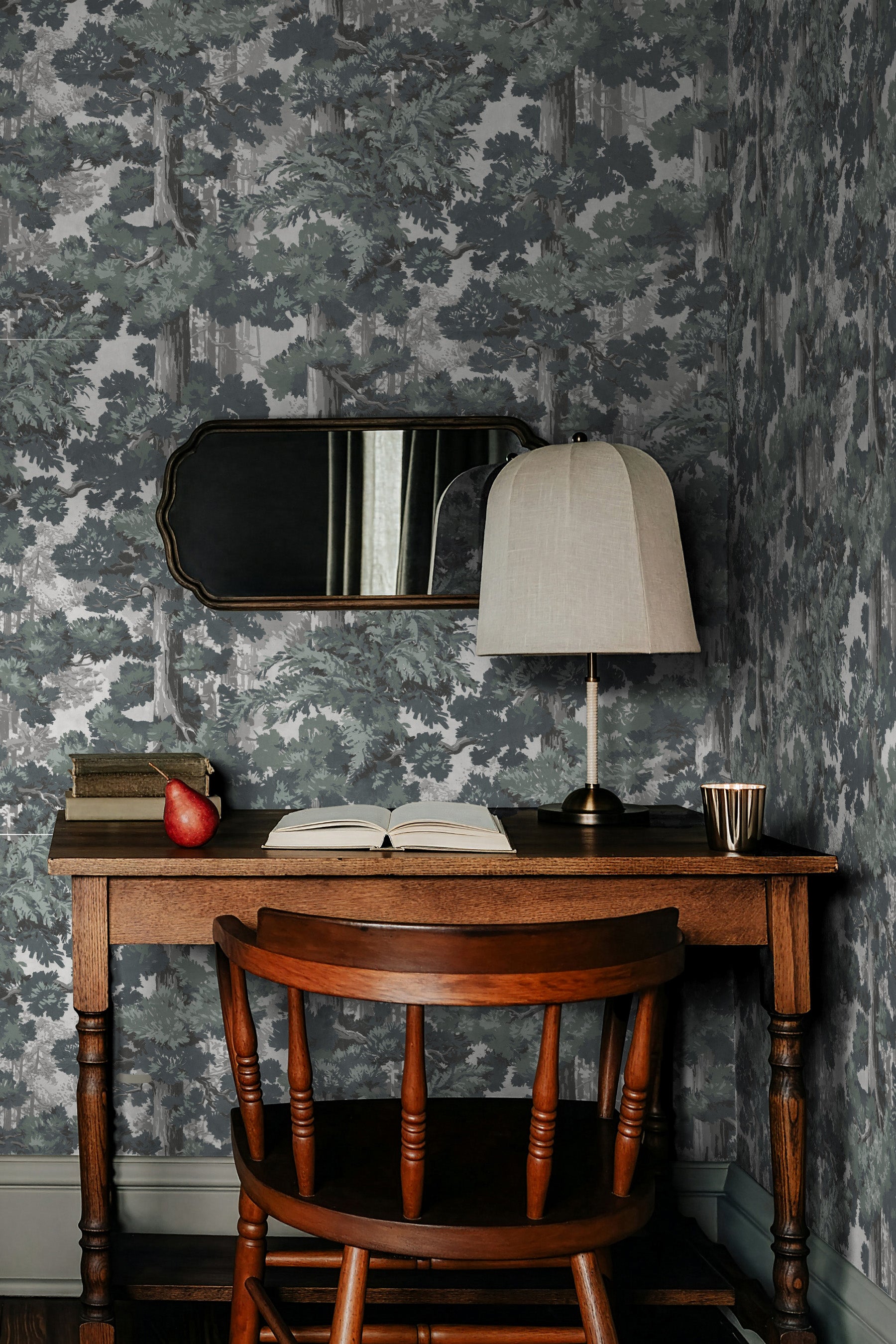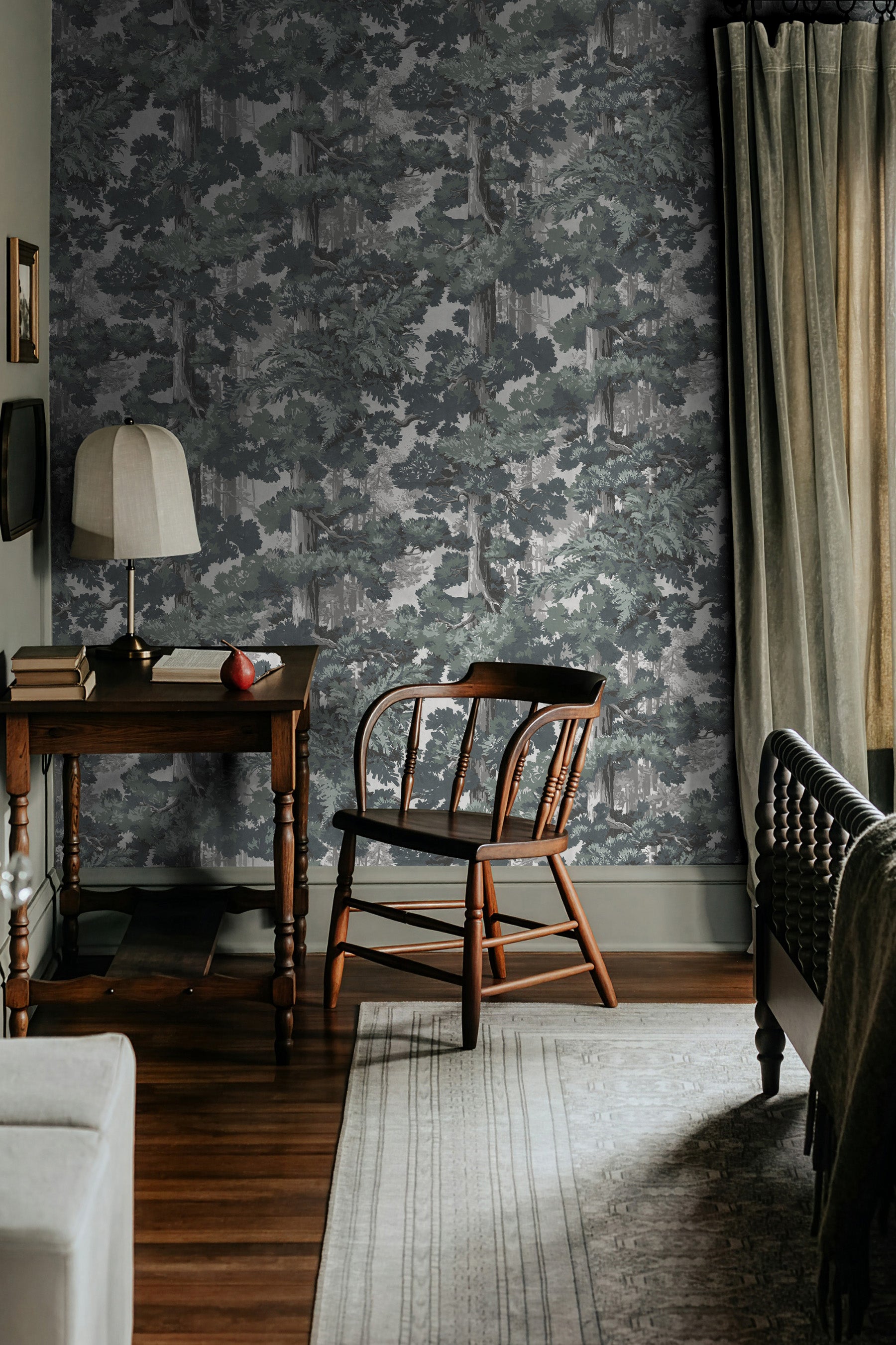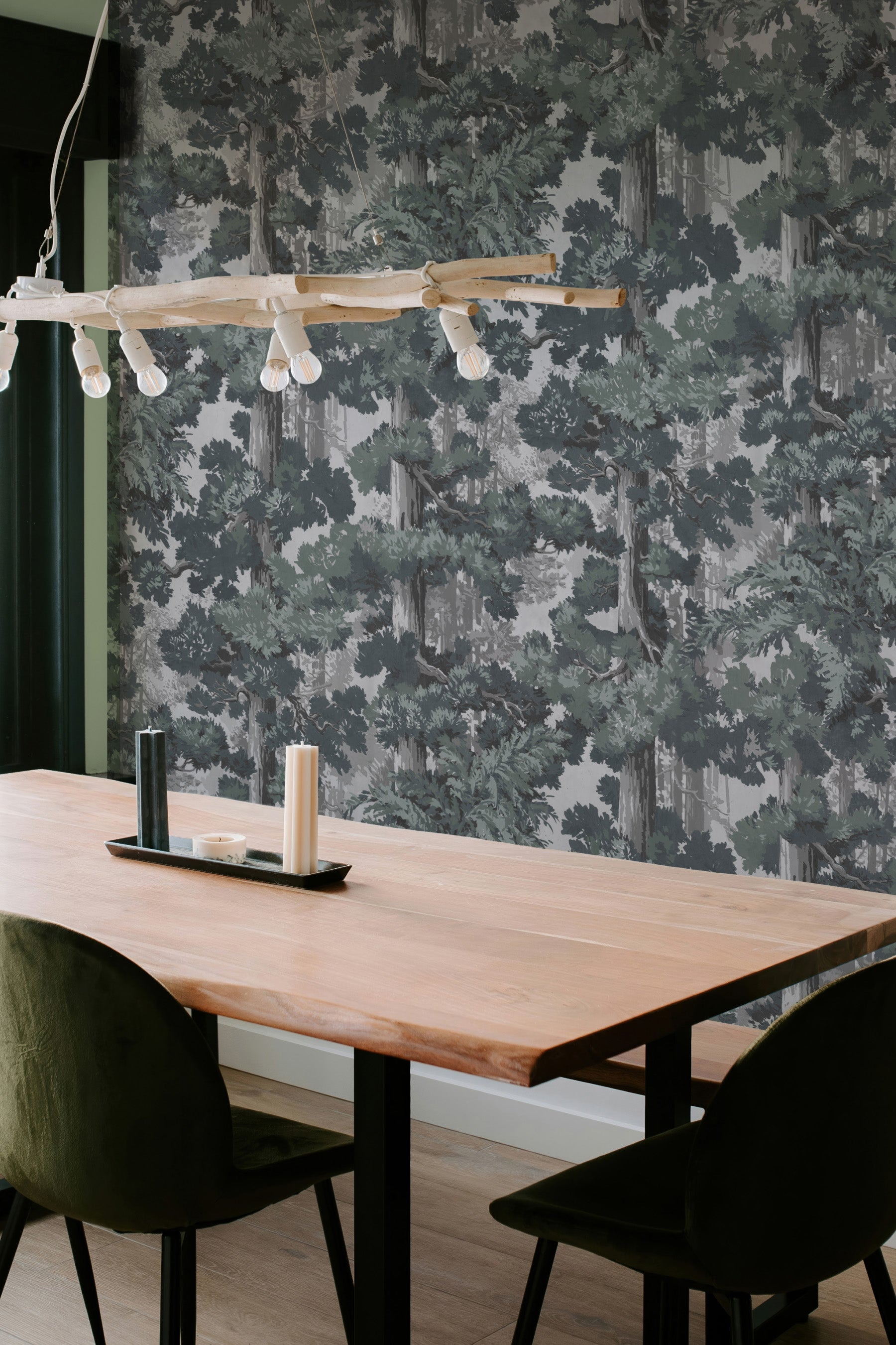 Sequoia captures the powerful serenity of conifer forests through a hand-painted approach. The trees, softly layered, create depth, movement, and a sense of scale. The effect is immersive yet calming, making Sequoia especially suited for spaces where you want to slow the pace and soften the edges of daily life. It brings nature indoors in a way that feels painterly, composed, and restorative.