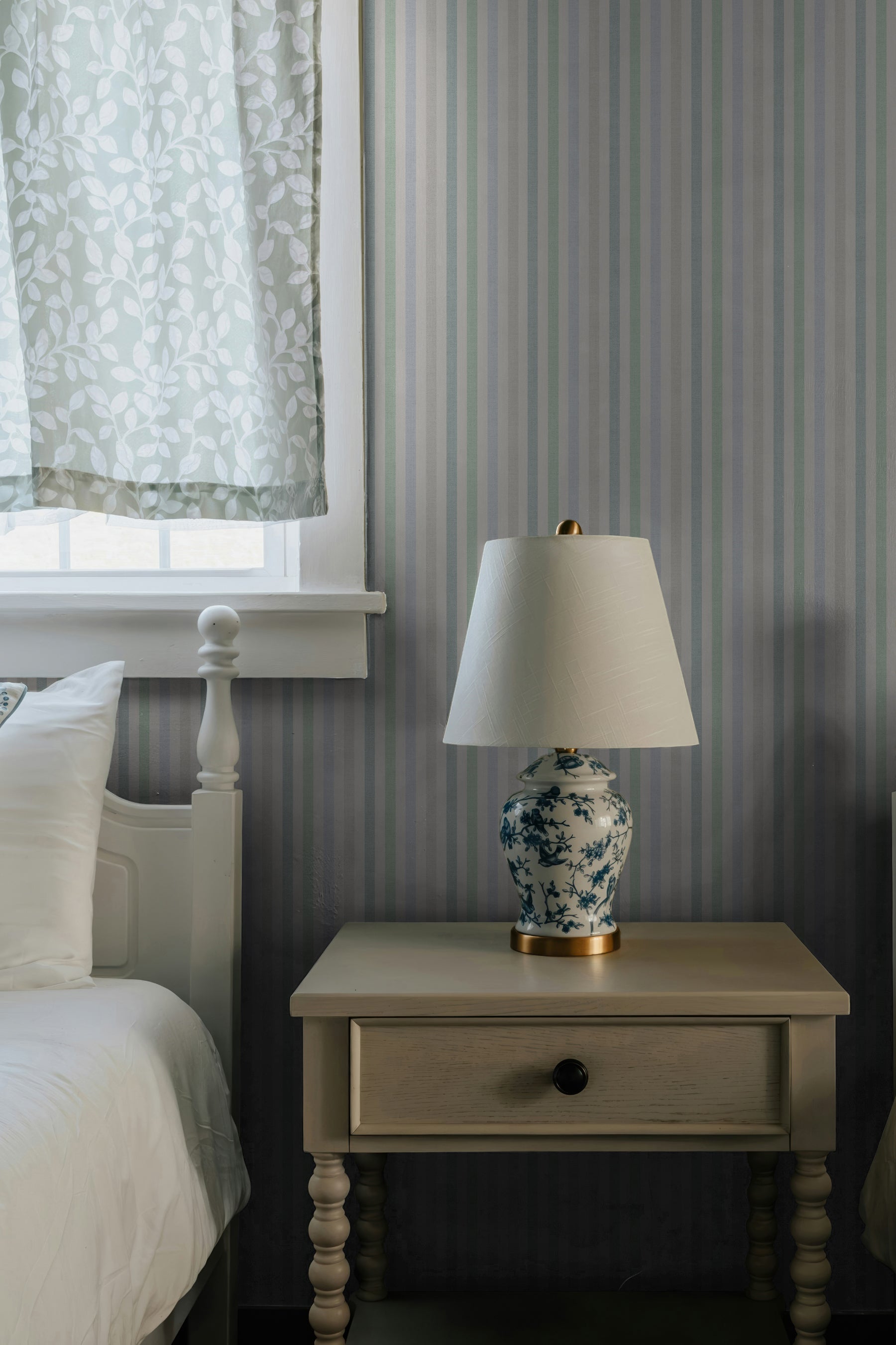 Ticking is a simple, classic stripe inspired by traditional linen textiles. Soft texture and subtle variation give the pattern a gently worn, fabric-like feel, keeping it warm rather than graphic. The stripe is easy and balanced, designed to layer effortlessly with florals, murals, and vintage patterns. Quiet and versatile, Ticking brings structure without formality. It's perfect for cottage interiors, bedrooms, hallways, and relaxed living spaces.